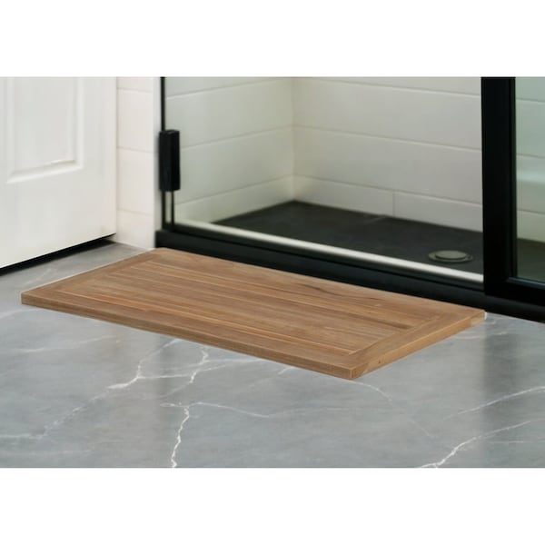 Elevate the safety and comfort of your shower experience with the addition of this natural teak 20-inch rectangular shower mat. Constructed from genuine teak wood that adds a touch of the spa experience to your space. Known for its antimicrobial, water, and mildew-resistant properties that promote a hygienic bathroom environment, this mat provides a practical and stylish addition to your bathroom, shower, or outdoor space. 20-inch h x 39-inch w x 1-inch d.