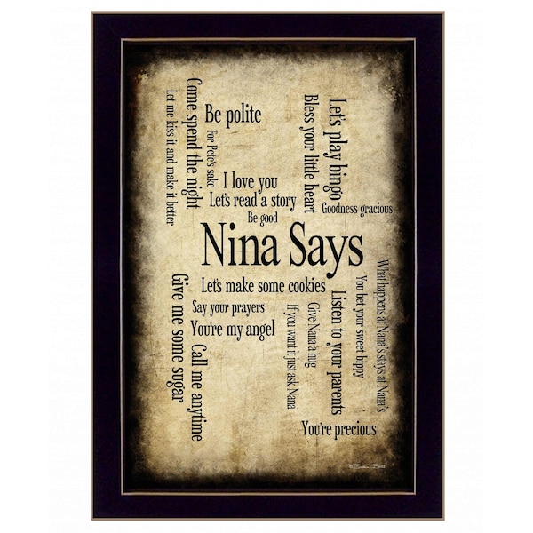 The nina says 4 black framed print wall art is the perfect decorative accessory for your home. This print is a visual artistic expression that allows you to decorate your space in style. Reproduced for you on paper, this hanging decorative accent will be a trendy and fashionable way to dress your walls. Adding this hanging wall art to your space to make your room feel more finished and attractive. Utilize this opportunity to create a focal point in the room with this fabulous wall decor option. 14-inch H x 10-inch W x 1-inch D
