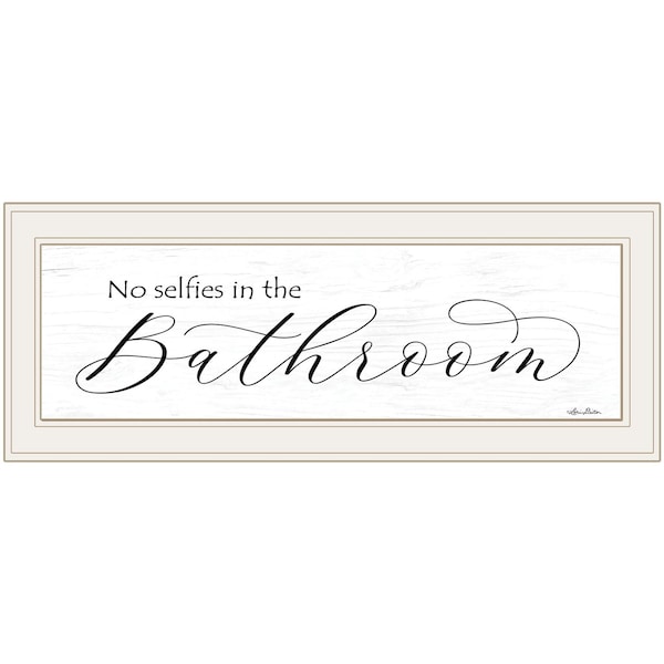 Unique and decorative, this no selfies in the bathroom 1 white framed print bathroom wall art will leave a lasting impression. This print is a visual artistic expression that allows you to decorate your space in style. Reproduced for you on paper, this hanging decorative accent will be a trendy and fashionable way to dress your walls. Adding this hanging wall art to your space to make your room feel more finished and attractive. Utilize this opportunity to create a focal point in the room with this fabulous wall decor option. 11-inch H x 23-inch W x 1-inch D