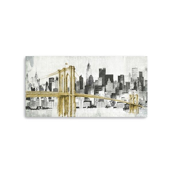 The nyc golden bridge skyline unframed print wall art is the perfect decorative accessory for your home. This print is a visual artistic expression that allows you to decorate your space in style. Reproduced for you on canvas, this hanging decorative accent will be a trendy and fashionable way to dress your walls. Hang on your wall to add some up to date fashion and decoration. Utilize this opportunity to create a focal point in the room with this fabulous wall decor option. 20 inches H x 10 inches W x 1.25 inches D