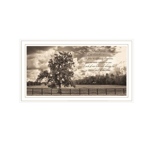 The our family white framed print wall art is the perfect decorative accessory for your home. This print is a visual artistic expression that allows you to decorate your space in style. Reproduced for you on wood, this hanging decorative accent will be a trendy and fashionable way to dress your walls in a rustic and modern farmhouse vibe. Adding this hanging wall art to your space to make your room feel more finished and attractive. Instantly liven up your space with this art that brings color and dimension to your walls. 11-inch H x 20-inch W x 1-inch D