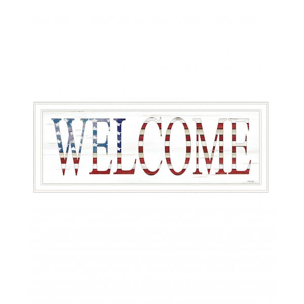 Bring some sizzle to your space with this eye-catching patriotic welcome 1 white framed print wall art. This print is a visual artistic expression that allows you to decorate your space in style. Reproduced for you on wood, this hanging decorative accent will be a trendy and fashionable way to dress your walls in a rustic and modern farmhouse vibe. Hang on your wall to add some up to date fashion and decoration. Instantly liven up your space with this art that brings color and dimension to your walls. 15-inch H x 39-inch W x 1-inch D
