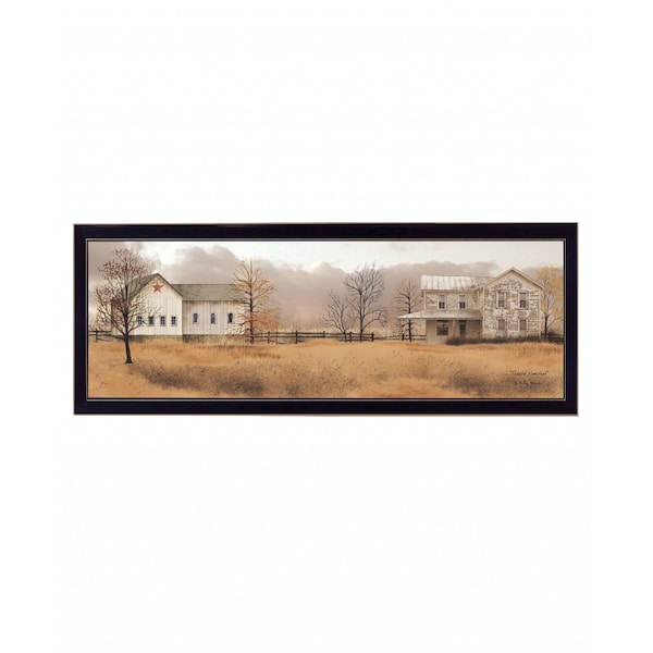 Bring some sizzle to your space with this eye-catching peaceful homestead 3 black framed print wall art. This print is a visual artistic expression that allows you to decorate your space in style. Reproduced for you on wood, this hanging decorative accent will be a trendy and fashionable way to dress your walls in a rustic and modern farmhouse vibe. Adding this hanging wall art to your space to make your room feel more finished and attractive. Utilize this opportunity to create a focal point in the room with this fabulous wall decor option. 14-inch H x 38-inch W x 1-inch D