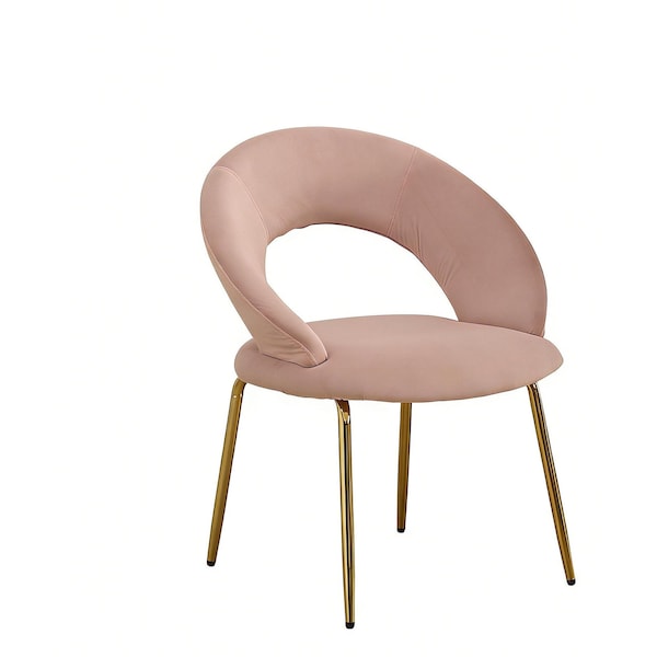 Pink and Gold Boucle and Metal Curved Back Dining Side Chair