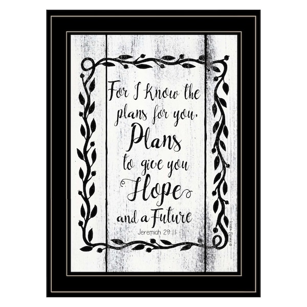 This plans to give you hope 2 black framed print wall art will add a beautiful decorative accent to your decor. This print is a visual artistic expression that allows you to decorate your space in style. Reproduced for you on wood, this hanging decorative accent will be a trendy and fashionable way to dress your walls in a rustic and modern farmhouse vibe. Hang on your wall to add some up to date fashion and decoration. Utilize this opportunity to create a focal point in the room with this fabulous wall decor option. 19-inch H x 15-inch W x 1-inch D
