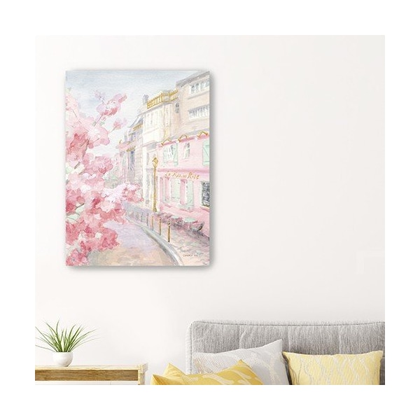 Unique and decorative, this pretty pastel pink paris street unframed print wall art will leave a lasting impression. This print is a visual artistic expression that allows you to decorate your space in style. Reproduced for you on canvas, this hanging decorative accent will be a trendy and fashionable way to dress your walls. Adding this hanging wall art to your space to make your room feel more finished and attractive. Utilize this opportunity to create a focal point in the room with this fabulous wall decor option. 40 inches H x 30 inches W x 1.25 inches D