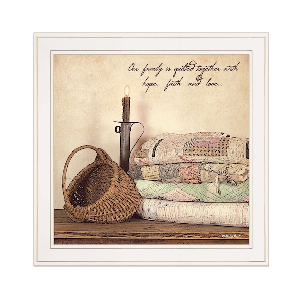 The quilted together 1 white framed print wall art is the perfect decorative accessory for your home. This print is a visual artistic expression that allows you to decorate your space in style. Reproduced for you on paper, this hanging decorative accent will be a trendy and fashionable way to dress your walls. Adding this hanging wall art to your space to make your room feel more finished and attractive. Instantly liven up your space with this art that brings color and dimension to your walls. 21-inch H x 21-inch W x 1-inch D