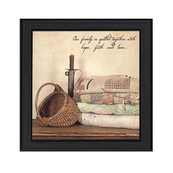 The quilted together 2 black framed print wall art is the perfect decorative accessory for your home. This print is a visual artistic expression that allows you to decorate your space in style. Reproduced for you on paper, this hanging decorative accent will be a trendy and fashionable way to dress your walls. Adding this hanging wall art to your space to make your room feel more finished and attractive. Utilize this opportunity to create a focal point in the room with this fabulous wall decor option. 21-inch H x 21-inch W x 1-inch D