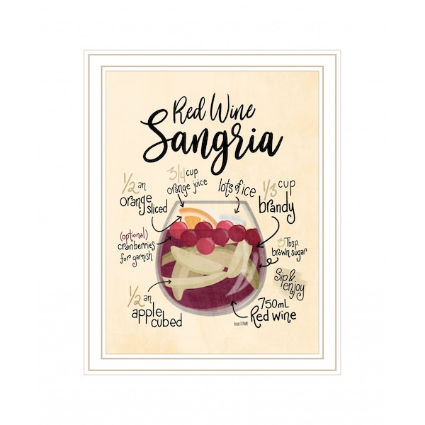 Bring some sizzle to your space with this eye-catching red wine sangria 2 white framed print wall art. This print is a visual artistic expression that allows you to decorate your space in style. Reproduced for you on wood, this hanging decorative accent will be a trendy and fashionable way to dress your walls in a rustic and modern farmhouse vibe. Hang on your wall to add some up to date fashion and decoration. Utilize this opportunity to create a focal point in the room with this fabulous wall decor option. 18-inch H x 14-inch W x 1-inch D