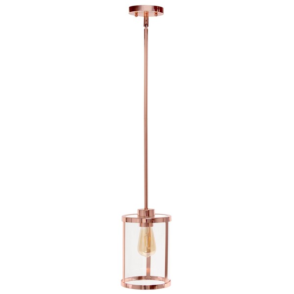 This beautiful rose gold cylinder iron ceiling light with clear shades will brighten up and change the look of your room. This light will require hardwiring installation. Get creative and change up the look of any room from hallway, to closet, to office or bedroom with this gorgeous hanging chandelier light fixture. 55.00-inch h x 6.75-inch w x 6.75-inch d.