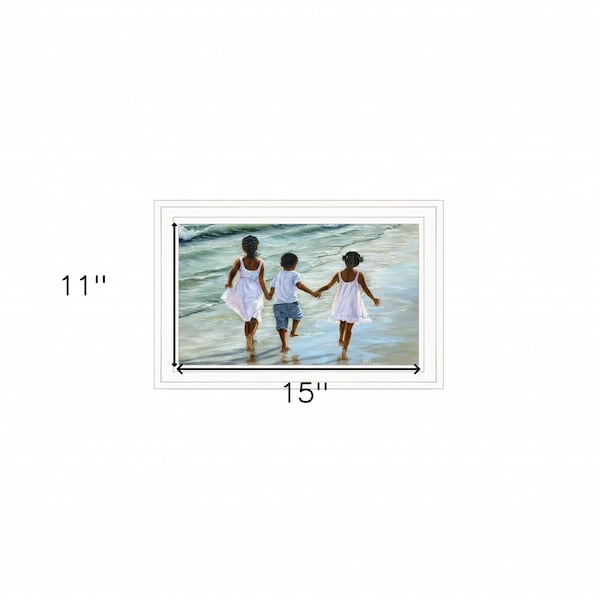 This running on the beach 2 white framed print wall art will add a beautiful decorative accent to your decor. This print is a visual artistic expression that allows you to decorate your space in style. Reproduced for you on paper, this hanging decorative accent will be a trendy and fashionable way to dress your walls. Hang on your wall to add some up to date fashion and decoration. Instantly liven up your space with this art that brings color and dimension to your walls. 15-inch H x 11-inch W x 1-inch D