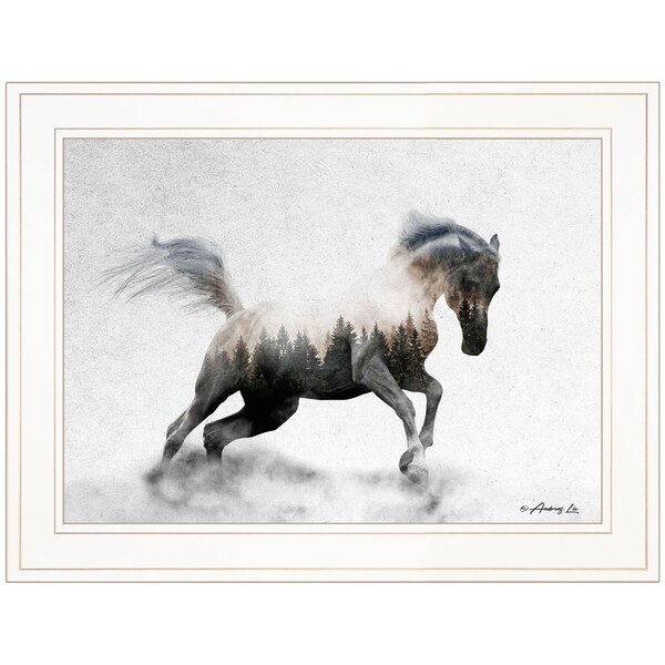 Bring some sizzle to your space with this eye-catching running white stallion 1 white framed print wall art. Bring a little bit of the farm indoors when you hang this horse artwork. This print is a visual artistic expression that allows you to decorate your space in style. Reproduced for you on paper, this hanging decorative accent will be a trendy and fashionable way to dress your walls. Hang on your wall to add some up to date fashion and decoration. Instantly liven up your space with this art that brings color and dimension to your walls. 15-inch H x 19-inch W x 1-inch D