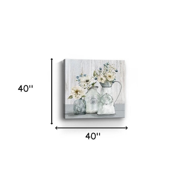 This rustic flowers unframed print wall art will add a beautiful decorative accent to your decor. This print is a visual artistic expression that allows you to decorate your space in style. Reproduced for you on canvas, this hanging decorative accent will be a trendy and fashionable way to dress your walls. Hang on your wall to add some up to date fashion and decoration. Utilize this opportunity to create a focal point in the room with this fabulous wall decor option. 40 inches H x 40 inches W x 1.25 inches D