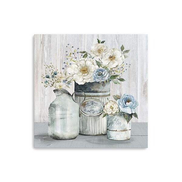 This rustic grey flowers unframed print wall art will add a beautiful decorative accent to your decor. This print is a visual artistic expression that allows you to decorate your space in style. Reproduced for you on canvas, this hanging decorative accent will be a trendy and fashionable way to dress your walls. Adding this hanging wall art to your space to make your room feel more finished and attractive. Instantly liven up your space with this art that brings color and dimension to your walls. 20 inches H x 20 inches W x 1.25 inches D