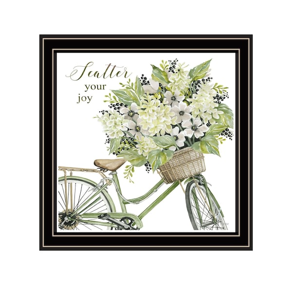 This scatter your joy with flowers black framed print wall art will add a beautiful decorative accent to your decor. This print is a visual artistic expression that allows you to decorate your space in style. Reproduced for you on wood, this hanging decorative accent will be a trendy and fashionable way to dress your walls in a rustic and modern farmhouse vibe. Adding this hanging wall art to your space to make your room feel more finished and attractive. Utilize this opportunity to create a focal point in the room with this fabulous wall decor option. 14-inch H x 14-inch W x 1-inch D
