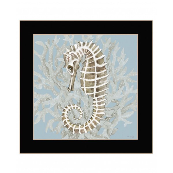 This seahorse and coral black framed print wall art will add a beautiful decorative accent to your decor. This print is a visual artistic expression that allows you to decorate your space in style. Reproduced for you on wood, this hanging decorative accent will be a trendy and fashionable way to dress your walls in a modern coastal vibe. Hang on your wall to add some up to date fashion and decoration. 14-inch H x 14-inch W x 1-inch D