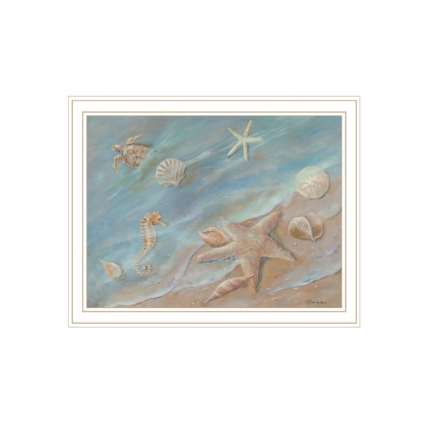 The seashore star white framed print wall art is the perfect decorative accessory for your home. This print is a visual artistic expression that allows you to decorate your space in style. Reproduced for you on wood, this hanging decorative accent will be a trendy and fashionable way to dress your walls in a rustic and modern farmhouse vibe. Adding this hanging wall art to your space to make your room feel more finished and attractive. Utilize this opportunity to create a focal point in the room with this fabulous wall decor option. 14-inch H x 18-inch W x 1-inch D