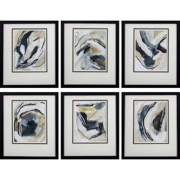 These six images of Netural Watercolor Abstract Framed Art will be a great accent for your favorite space. Position together or separate, these neutral abstract images complement each other, come triple matted and framed under glass, bordered in black frames. Ideal for almost any home decor or anywhere you are looking for shades of soft moody colors, these art prints will make a perfect way to liven up your space. 16" x 14" x 1" each. Set of 6