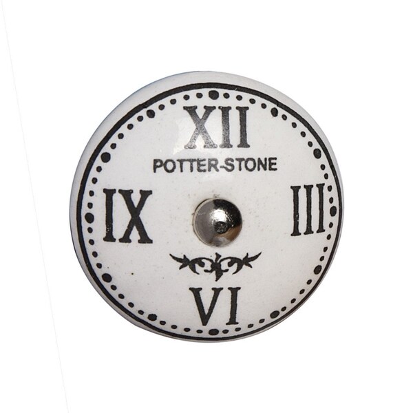 Give your drawers or cabinets a facelift with this set of eight black and white ceramic and metal drawer pull knobs. A favorite of designers and diyer's alike, these high quality round knob traditional style knobs are versatile in use and will change up the look of your existing furniture and cabinetry in a snap. Hand-painted by talented artisans, these knobs will add a touch of artisanal design. 1.5-inch h x 1.5-inch w x 1.5-inch d.