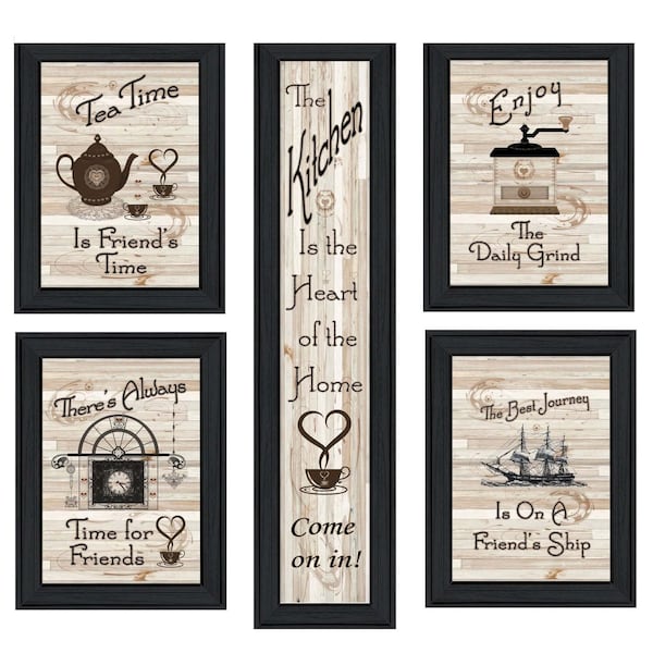 This set of five kitchen friendship 2 black framed print kitchen wall art will add a beautiful decorative accent to your decor. This print is a visual artistic expression that allows you to decorate your space in style. Reproduced for you on paper, this hanging decorative accent will be a trendy and fashionable way to dress your walls. Hang on your wall to add some up to date fashion and decoration. Instantly liven up your space with this art that brings color and dimension to your walls. 33-inch H x 11-inch W x 1-inch D