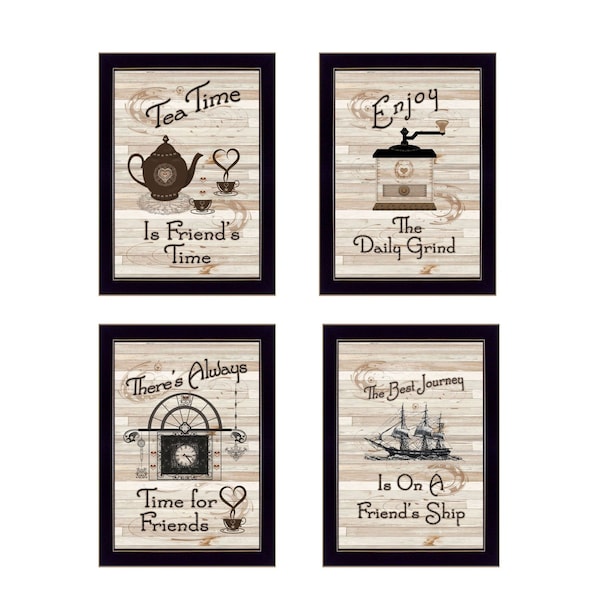 This set of four friendship 2 black framed print kitchen wall art will add a beautiful decorative accent to your decor. This print is a visual artistic expression that allows you to decorate your space in style. Reproduced for you on paper, this hanging decorative accent will be a trendy and fashionable way to dress your walls. Hang on your wall to add some up to date fashion and decoration. Instantly liven up your space with this art that brings color and dimension to your walls. 14-inch H x 10-inch W x 1-inch D
