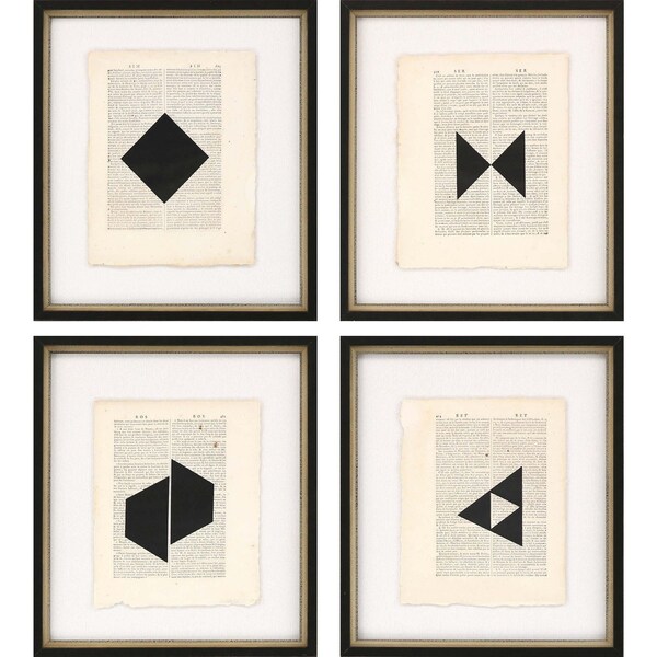 This set of four geometrics i black framed print wall art will add a beautiful decorative accent to your decor. This print is a visual artistic expression that allows you to decorate your space in style. The mixed media photography style makes this photographic art appealing and gives it visual interest. Reproduced for you on paper, this hanging decorative accent will be a trendy and fashionable way to dress your walls. Hang on your wall to add some up to date fashion and decoration. Instantly liven up your space with this art that brings color and dimension to your walls. 17-inch H x 15-inch W x 2-inch D