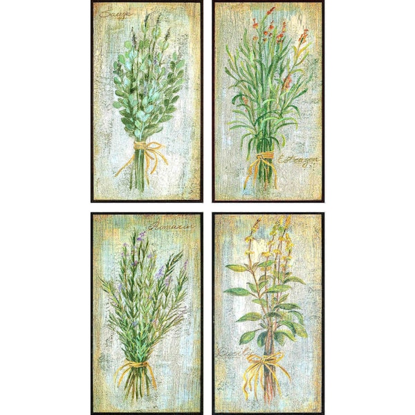 Add an air of fashion to your room and rejuvenate the space with this set of four herbs black framed print wall art. This print is a visual artistic expression that allows you to decorate your space in style. Reproduced for you on paper, this hanging decorative accent will be a trendy and fashionable way to dress your walls. Adding this hanging wall art to your space to make your room feel more finished and attractive. Utilize this opportunity to create a focal point in the room with this fabulous wall decor option. 25-inch H x 13-inch W x 1-inch D
