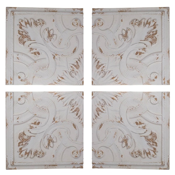 Add an air of fashion to your room and rejuvenate the space with this set of four white wood square framed art. With materials and a finish that is purposefully distressed, this hanging wall decor will instantly liven things up and bring color and dimension to your walls. 17.5-inch h x 1.5-inch w x 17.5-inch d.