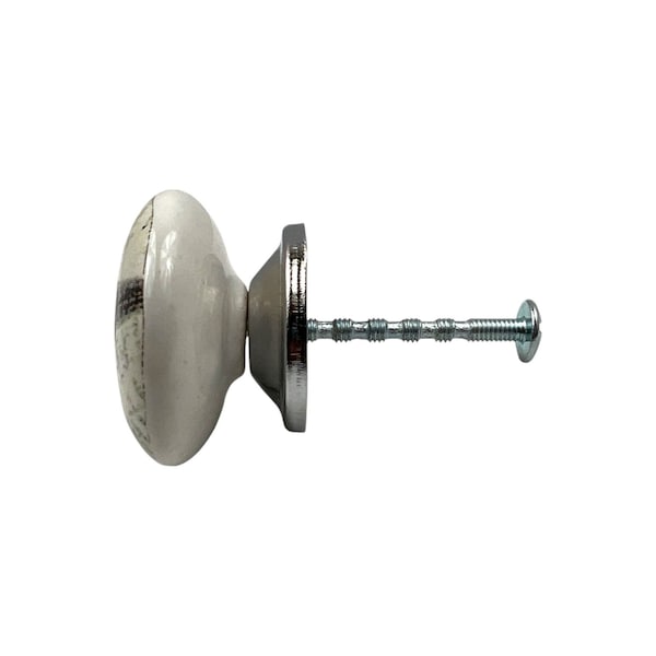 Transform your space quickly and easily with this set of six black and white poetic script ceramic drawer pull knobs. Designed in a charming round knob shape, these decorative accents bring a touch of elegance to any furniture. Crafted from high-quality ceramic, they offer durability alongside their artistic appeal. Each set comes with screws included for your convenience, ensuring a hassle-free installation process. The machine-made construction guarantees consistency in quality and style, making them a perfect choice for enhancing your home decor. 1.50-inch h x 1.25-inch w x 2.75-inch d.
