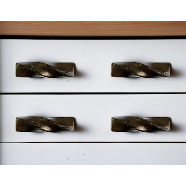 Give your drawers or cabinets a facelift with this set of six bronze rectangle knob geometric cast aluminum drawer pull knobs. Hand-painted by talented artisans, these knobs will add a touch of artisanal design. The rectangular shape provides a modern flair, making them suitable for various decor styles. Crafted from durable cast aluminum, these knobs are designed to withstand daily use while maintaining their aesthetic appeal. Each knob features purposeful distressing, adding character and uniqueness to your furniture pieces. With screws included, installation is quick and hassle-free. 2.00-inch h x 1.50-inch w x 3.00-inch d.