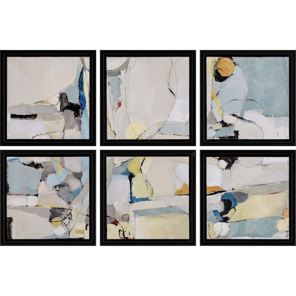 Unique and decorative, this six piece multi set modern abstract black floater frame print wall art will leave a lasting impression. This print is a visual artistic expression that allows you to decorate your space in style. Reproduced for you on paper, this hanging decorative set will be a trendy and fashionable way to dress your walls. Instantly liven up your space with this art that brings color and dimension to your walls. 14-inch H x 14-inch W x 2-inch D