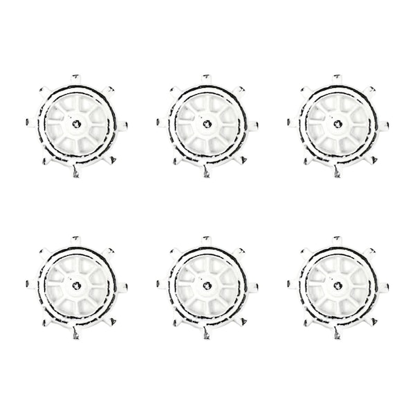 Give your drawers or cabinets a facelift with this set of six white iron drawer pull knobs. Machine made for precision to add a uniform look and style. These round knobs are crafted from durable iron, ensuring long-lasting performance in your home. Each knob features a nautical theme, perfect for adding a touch of coastal charm to your space. The set includes screws, making installation a breeze and ensuring a secure fit. With six knobs included, you can easily update multiple pieces of furniture to create a cohesive and stylish decor theme throughout your home. 1.75-inch h x 1.25-inch w x 2.75-inch d.