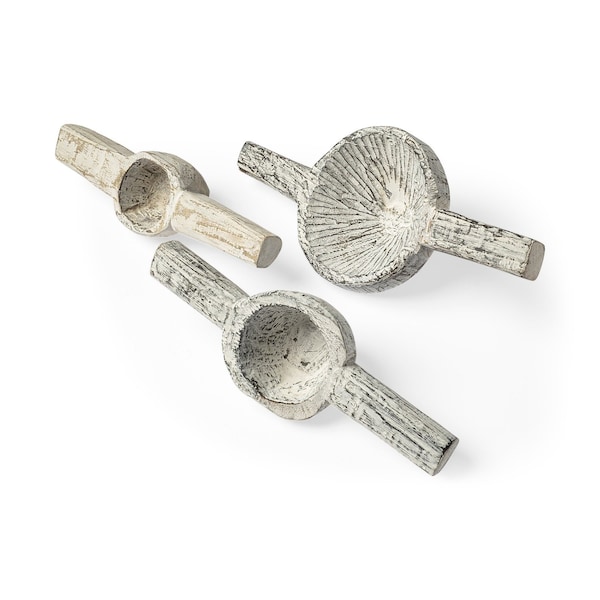 Unique and decorative, this set of three 3-inch white solid wood tabletop sculpture will leave a lasting impression. This charming decorative accent is expertly made of high grade solid wood in a white coloration. A perfect decorative addition for anyone who loves a stylish look and feel. 3-inch h x 5-inch w x 12-inch d.