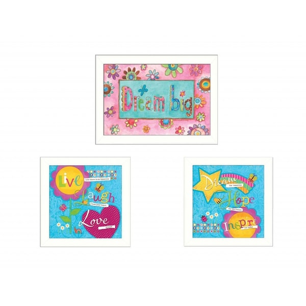 The set of three dream white framed print wall art is the perfect decorative accessory for your home. This print is a visual artistic expression that allows you to decorate your space in style. Reproduced for you on paper, this hanging decorative accent will be a trendy and fashionable way to dress your walls. Hang on your wall to add some up to date fashion and decoration. Utilize this opportunity to create a focal point in the room with this fabulous wall decor option. 14-inch H x 48-inch W x 1.5-inch D