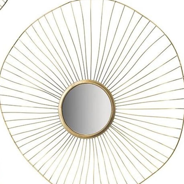 Add a touch of sunshine to any space in your home with this set of three gold iron sunburst framed accent mirror. Framed with iron, this mirror will bring practical application and fashionable design to your space, adding some contemporary flair to your decor. Features quality craftsmanship in every facet that ensures durability and long-lasting wear. Add this exceptional quality mirror to your space for a beautiful reflection and a bit of elevated style. 25.40-inch h x 35.80-inch w x 5.10-inch d.