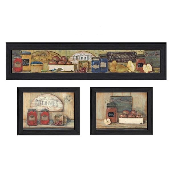 This set of three kitchen black framed print kitchen wall art will add a beautiful decorative accent to your decor. This print is a visual artistic expression that allows you to decorate your space in style. Reproduced for you on paper, this hanging decorative accent will be a trendy and fashionable way to dress your walls. Hang on your wall to add some up to date fashion and decoration. Utilize this opportunity to create a focal point in the room with this fabulous wall decor option. 15-inch H x 78-inch W x 1.5-inch D
