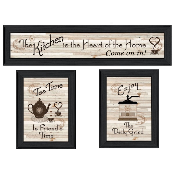 Bring some sizzle to your space with this eye-catching set of three kitchen black framed prints kitchen wall art. This print is a visual artistic expression that allows you to decorate your space in style. Reproduced for you on paper, this hanging decorative accent will be a trendy and fashionable way to dress your walls. Adding this hanging wall art to your space to make your room feel more finished and attractive. Instantly liven up your space with this art that brings color and dimension to your walls. 25 inches H x 33 inches W x 1 inches D
