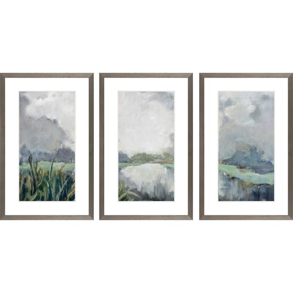 Unique and decorative, this set of three lakeside watercolor passage silver framed wall art will leave a lasting impression. This print is a visual artistic expression that allows you to decorate your space in style. Reproduced for you on paper, this hanging decorative set will be a trendy and fashionable way to dress your walls. Hang on your wall to add some up to date fashion and decoration. 32-inch H x 20-inch W x 2-inch D