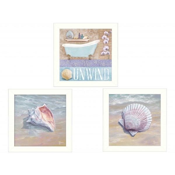This set of three shells ii white framed print bathroom wall art will add a beautiful decorative accent to your decor. This print is a visual artistic expression that allows you to decorate your space in style. Reproduced for you on paper, this hanging decorative accent will be a trendy and fashionable way to dress your walls. Adding this hanging wall art to your space to make your room feel more finished and attractive. Utilize this opportunity to create a focal point in the room with this fabulous wall decor option. 14-inch H x 42-inch W x 1.5-inch D