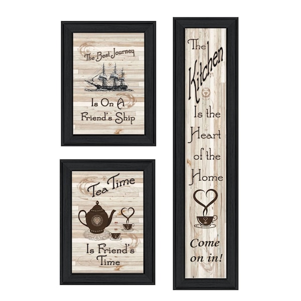 This set of three the kitchen collection ii 2 black framed print kitchen wall art will add a beautiful decorative accent to your decor. This print is a visual artistic expression that allows you to decorate your space in style. Reproduced for you on paper, this hanging decorative accent will be a trendy and fashionable way to dress your walls. Adding this hanging wall art to your space to make your room feel more finished and attractive. Utilize this opportunity to create a focal point in the room with this fabulous wall decor option. 33-inch H x 11-inch W x 1-inch D
