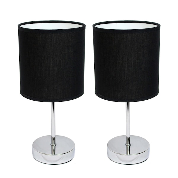 Add a bright anchor to your room with this set of two 12-inch silver metal table lamp with black drum shade. A gorgeous silver metal base brings just the right amount of pizzazz to this fabulous lamp. The black drum fabric shade is a great compliment to this lamp. This standard table lamp is designed to provide general lighting to the area. The light that this lamp throws is soft and warm to elevate the look of most any space in your home. Bring some lite and good vibes into your space with this updated and stylishly designed lamp. 11.81-inch h x 5.51-inch w x 5.51-inch d.