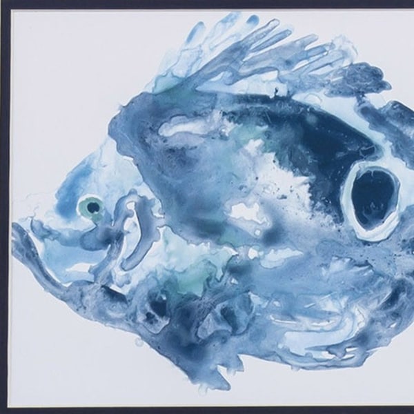 This pair of gorgeous Blue Watercolor Fish B Framed Art will be a great accent for your favorite space. Postion together or separate, these abstract images images compliment each other come double matted and framed under glass, bordered by high quality white frames. Ideal for coastal decor or anywhere you are looking for shades of blue and white, these watercolor ocean fish make a perfect way to liven up your space. 14" x 16" x 1" each. Set of 2