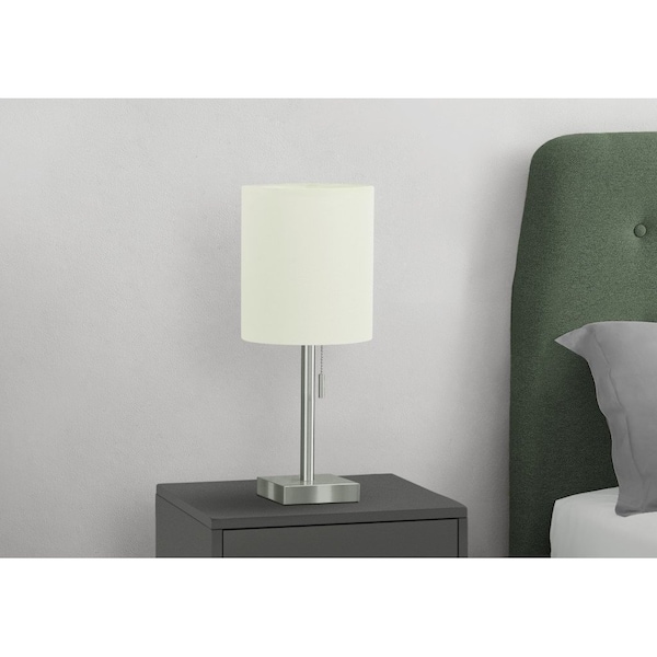 Add a bright anchor to your room with this set of two 17-inch silver metal candlestick usb table lamps with ivory drum shade. The base of this lamp is made of metal finished in a silver tone. Includes a ivory linen, drum shaped shade, making this a fashionable piece that will complement most any interior. This standard table lamp is designed to provide general lighting to the area. Use this lamp anywhere and elevate the look of the whole space. Bring some lite and good vibes into your space with this updated and stylishly designed lamp. 16.75-inch H x 7-inch W x 7-inch D