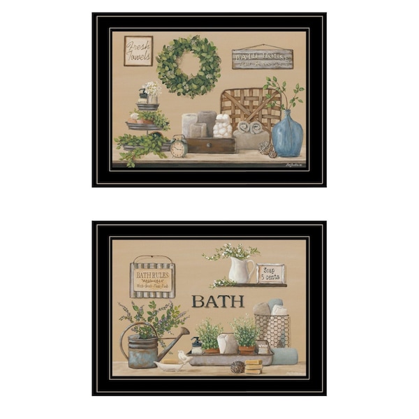 This set of two bath time 2 black framed print bathroom wall art will add a beautiful decorative accent to your decor. This print is a visual artistic expression that allows you to decorate your space in style. Reproduced for you on paper, this hanging decorative accent will be a trendy and fashionable way to dress your walls. Hang on your wall to add some up to date fashion and decoration. Instantly liven up your space with this art that brings color and dimension to your walls. 15-inch H x 19-inch W x 1-inch D