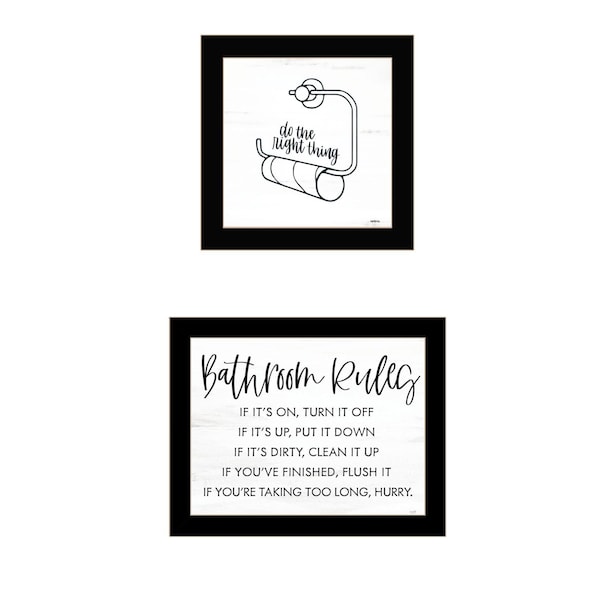 Unique and decorative, this set of two "bathroom rules" black framed wall art will leave a lasting impression. This acrylic painting is a way to express your artistic style and add some fashion to your walls. Reproduced for you on paper, this hanging decorative accent will be a trendy and fashionable way to dress your walls. Hang on your wall to add some up to date fashion and decoration. Instantly liven up your space with this art that brings color and dimension to your walls. 14-inch H x 14-inch W x 1-inch D