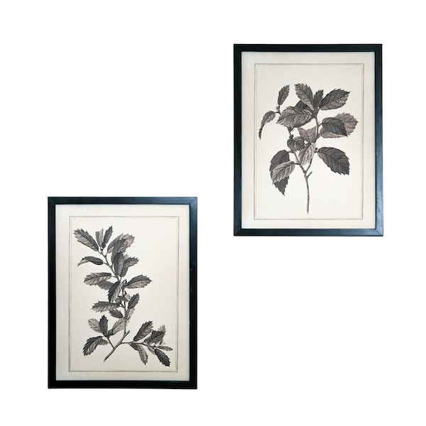 Instantly liven up your space with this art that brings color and dimension to your walls. This good looking decor will fill the empty space on your wall while adding a stylish and decorative touch. This set of two framed botanical leaves showcases shades of a stylish black and white coloration to add a chic botanical design that dresses up your space with color and dimension. Hang on your wall to add some up to date fashion and decoration. Utilize this set as an opportunity to create a focal point in the room 30.00-inch h x 21.50-inch w x 3.00-inch d.