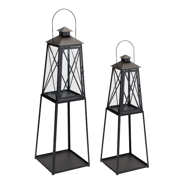You can showcase this set of two black distressed ornate iron tabletop lantern candle holders on its own as alternative centerpieces or position it among flower arrangements on your tables. A perfect functional and decorative accent piece for weddings, dining tables and living rooms alike. Add an extra pop of personality to every corner of your home with this gorgeous candleholder candleholders are an attractive way to turn a simple candle into a piece of decor. 33-inch h x 10.75-inch w x 10.75-inch d.
