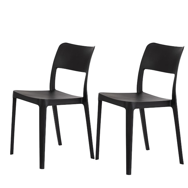 Transform your outdoor sanctuary into a haven of comfort and flair with the eye-catching set of two black heavy duty plastic outdoor stacking accent chairs, a perfect spot to unwind and soak up the ambiance. Safe to use both indoors and out, these chairs are designed to be not only durable but comfortable. An armless design gives this chair a modern vibe. The addition of this chair to your space will allow you to sit back, relax, and enjoy all the great outdoors has to offer. 30.50-inch h x 20.00-inch w x 17.00-inch d.