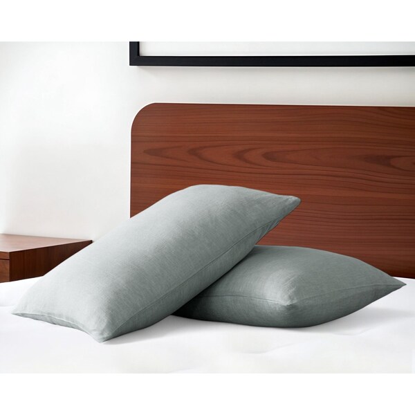 Experience a blissful night’s sleep with this set of two blue linen pillowcases. Indulge in simplicity and serenity with these exquisite solid color pillow cases. Crafted from premium quality linen that is known for its moisture wicking properties to keep you cool and comfortable, these sheets are a luxury but so worth it. They are breathable, have a soft thick texture that will get softer over time, and are wrinkle resistant (not wrinkle free). Crafted with care for a peaceful night’s sleep. 20-inch H x 36-inch W x 0.2-inch D
