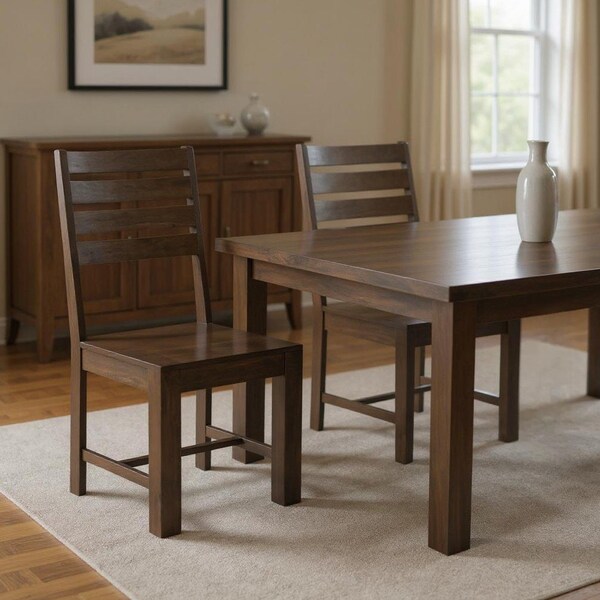Set of Two Brown Solid Wood Ladder Back Dining Side Chairs